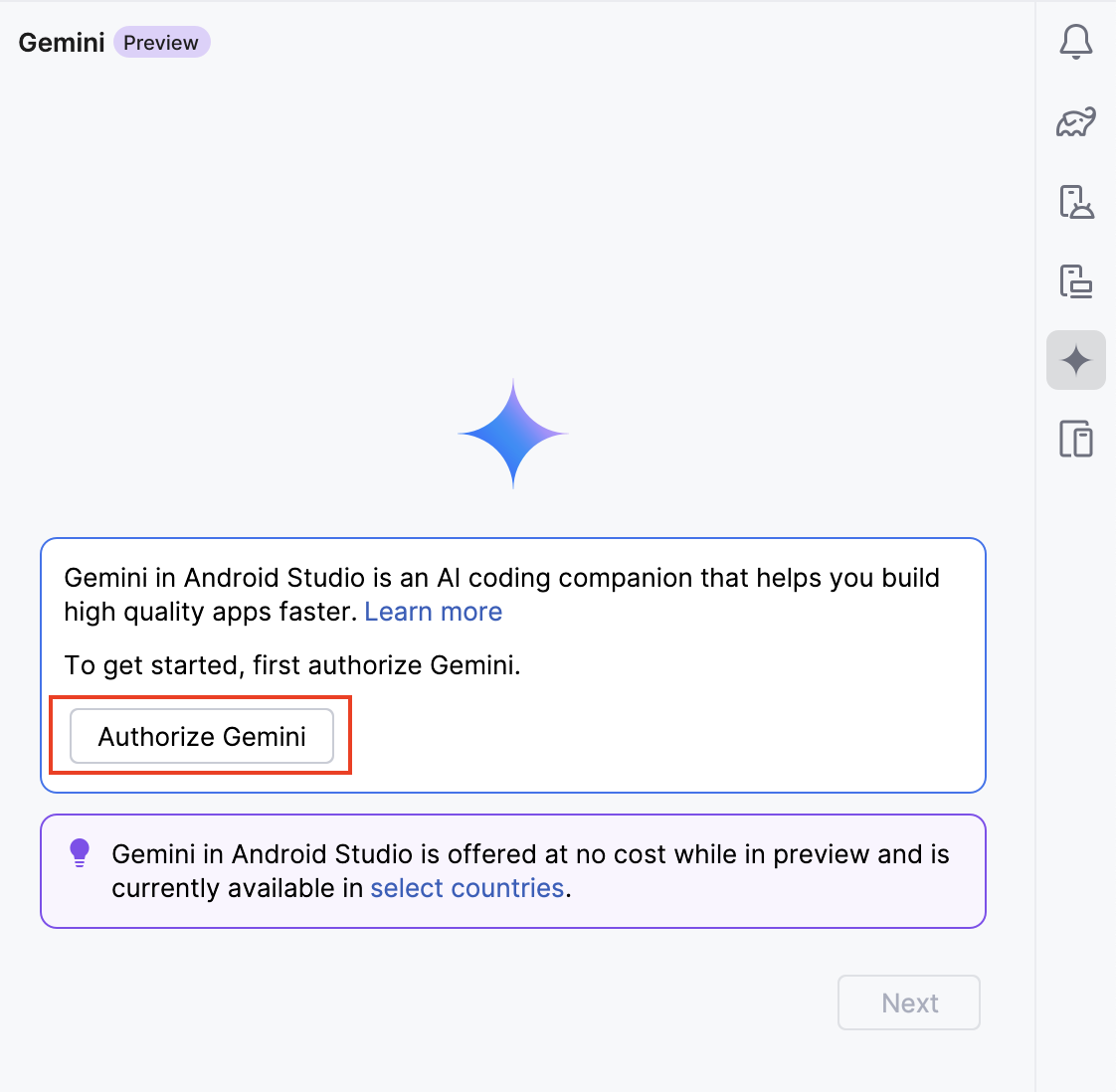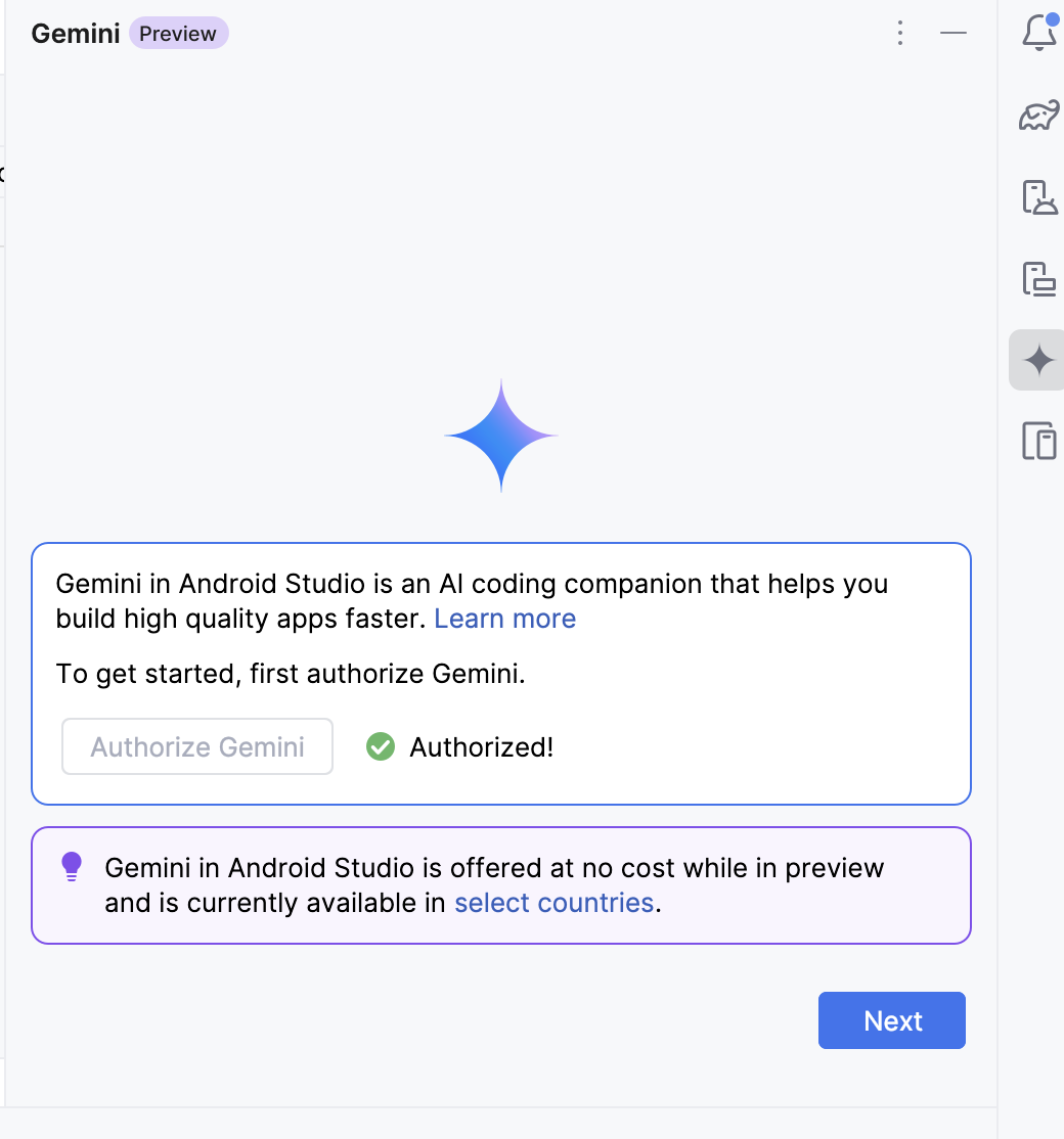 You can close this and go back to Android Studio. You will see a screen informing you that Gemini was authorized.